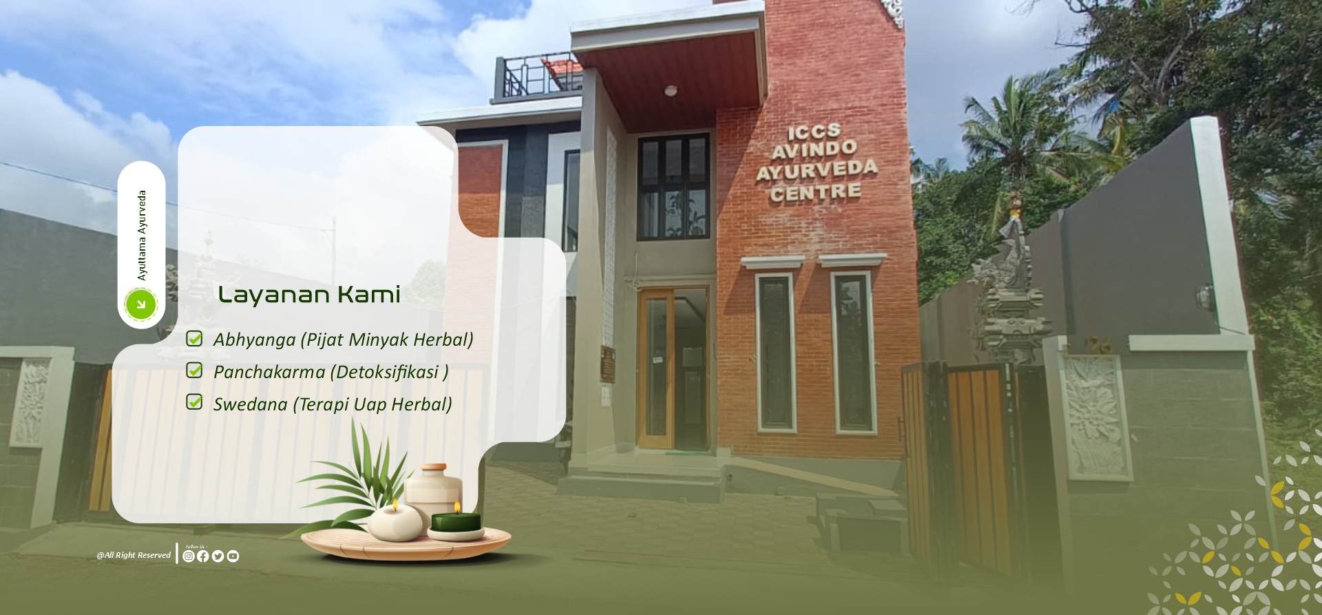 Di Ayuttama, setiap layanan dirancang berdasarkan kebijaksanaan Ayurveda — ilmu kehidupan holistik dari India kuno yang berfokus pada keseimbangan tubuh, pikiran, dan jiwa. Melalui perpaduan terapi tradisional, ramuan herbal alami, dan pendekatan personal sesuai Prakriti (tipe tubuh unik Anda), kami membantu memulihkan kesehatan dari akar permasalahannya.